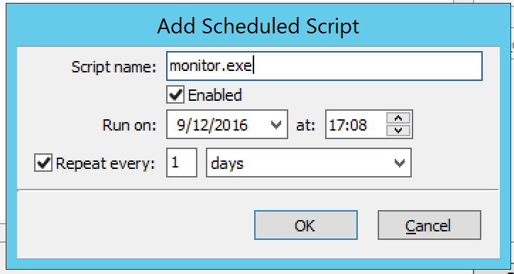 Click the checkbox to enable the scheduling process for the script. Likewise, at any time if you wish to disable the script, return to this dialog box and uncheck this option.