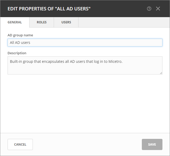 When using AD Group level authentication, you need to specify the Micetro groups that should be used for verifying group membership.