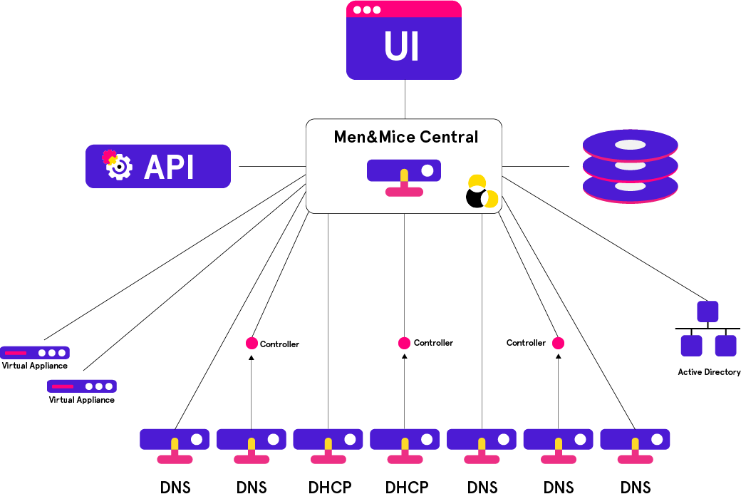 The Micetro agents are minimal-footprint services running on the DNS/DHCP server or alongside Men&Mice Central, and facilitate the communication between the connected service and Central.