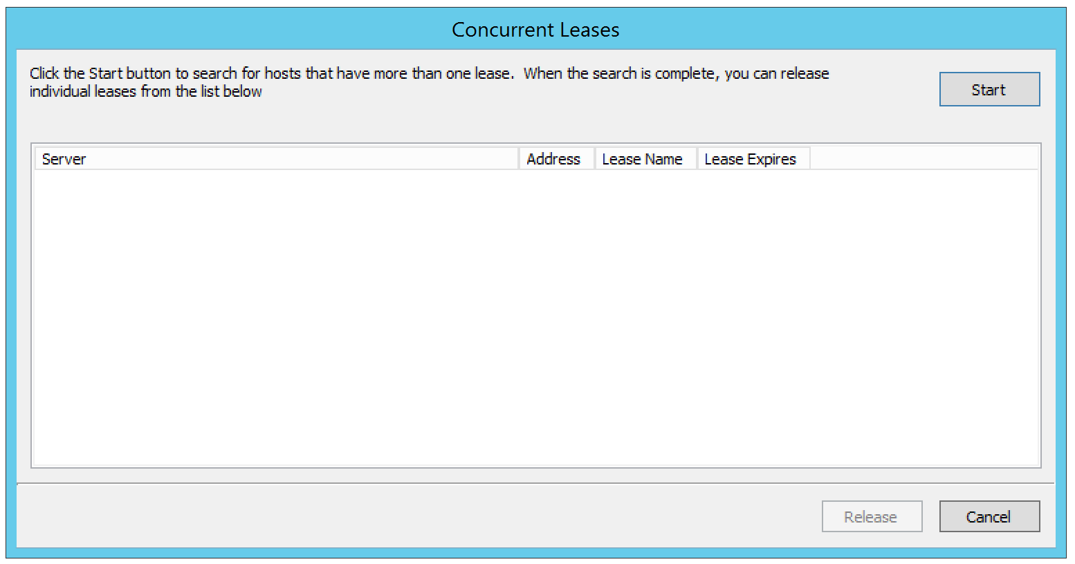 The Find Concurrent Leases maintenance operation allows you to see and release concurrent DHCP leases. Concurrent DHCP leases are multiple active leases that are assigned to the same MAC address.