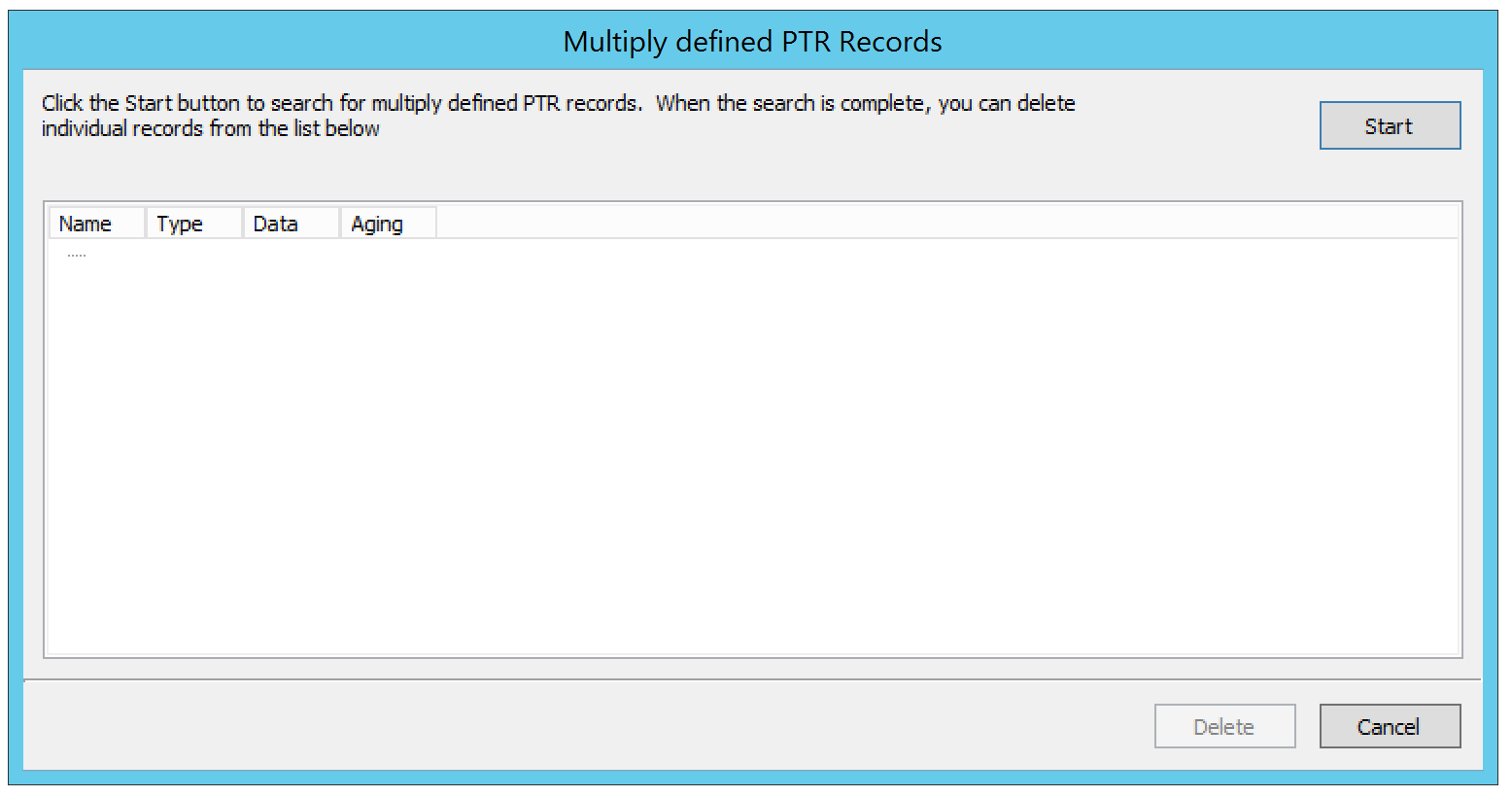 The Show Multiply Defined Records maintenance operation allows you to see and delete multiply defined PTR records. Multiply defined PTR records are multiple PTR records with the same name.