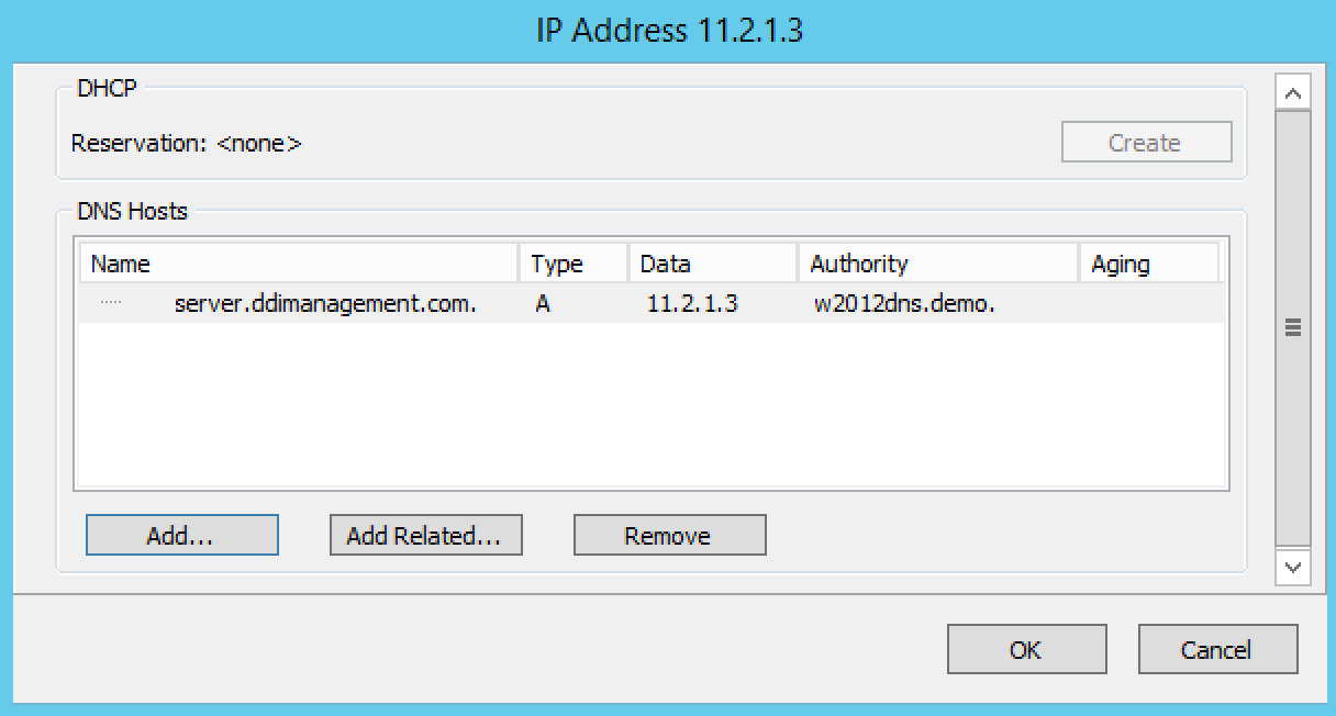 When the IP Address management component is enabled, you may notice some differences when working with Address (A) records in DNS zone windows, such as: