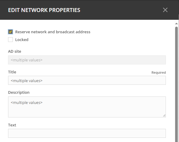 If the networks have different values for a property, the fields will display “<multiple values>”.