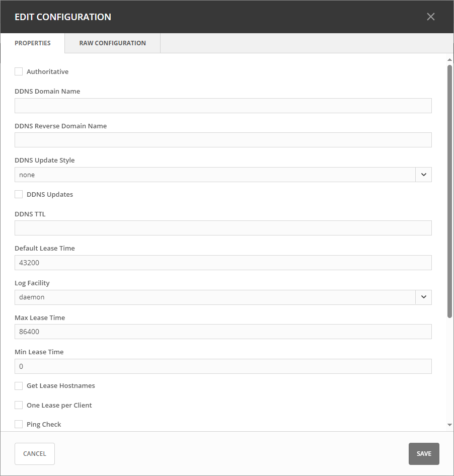 Log Facility: Selects the syslog facility for logging DHCP server messages. Note that not all facilities may be available on all systems.