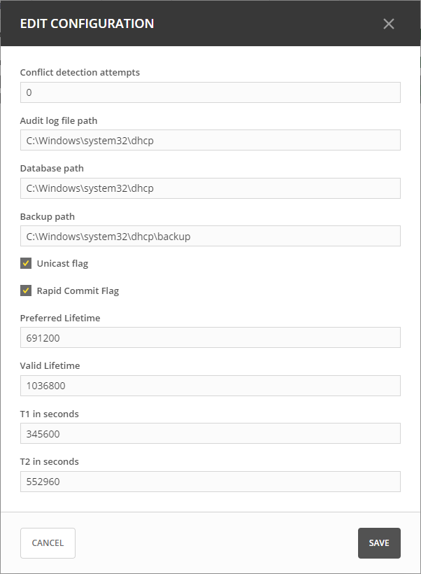Audit log file path: Specifies the location of the DHCP server audit log files.