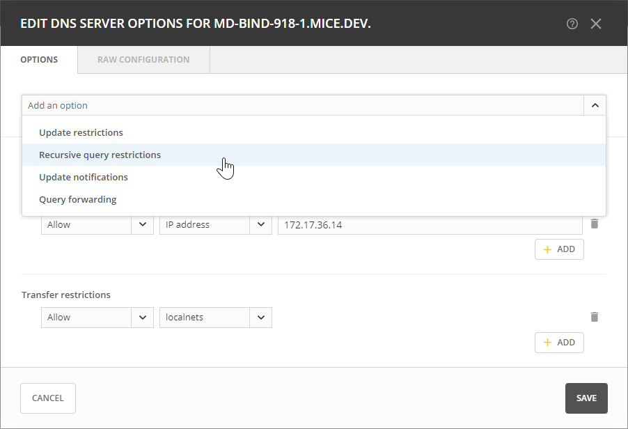 Recursive query restrictions: Sets restrictions on recursive queries, specifying which IP addresses or hosts can make recursive queries to your DNS server.
