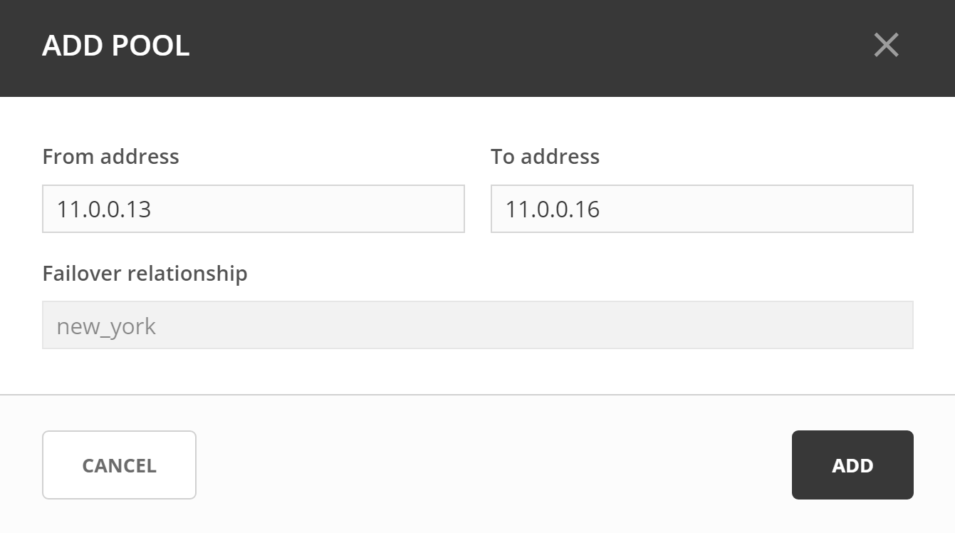At least one pool must exist in the scope before adding it to the failover relationship.