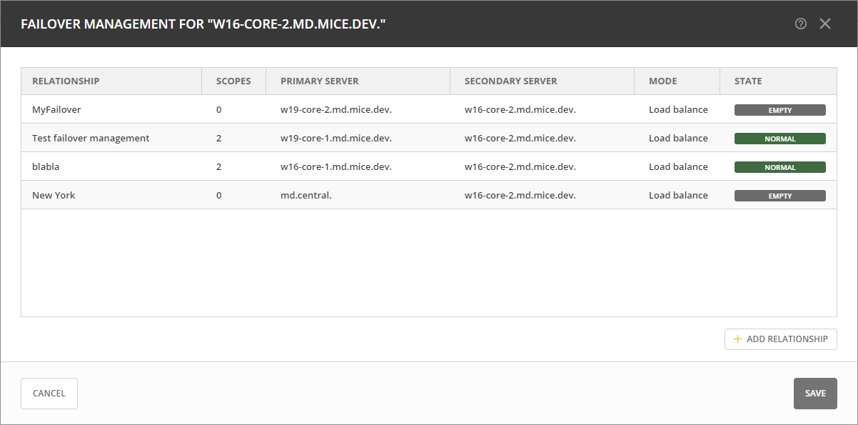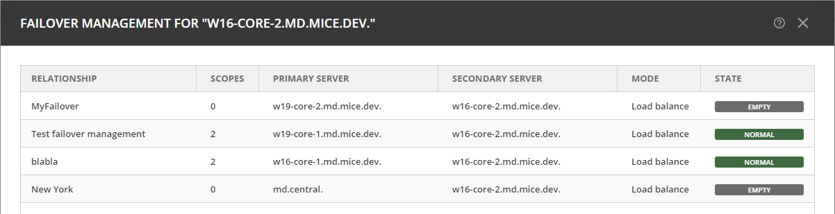If the failover relationship was empty before the scope was added to it, the status will change from “Empty” to “Normal”.