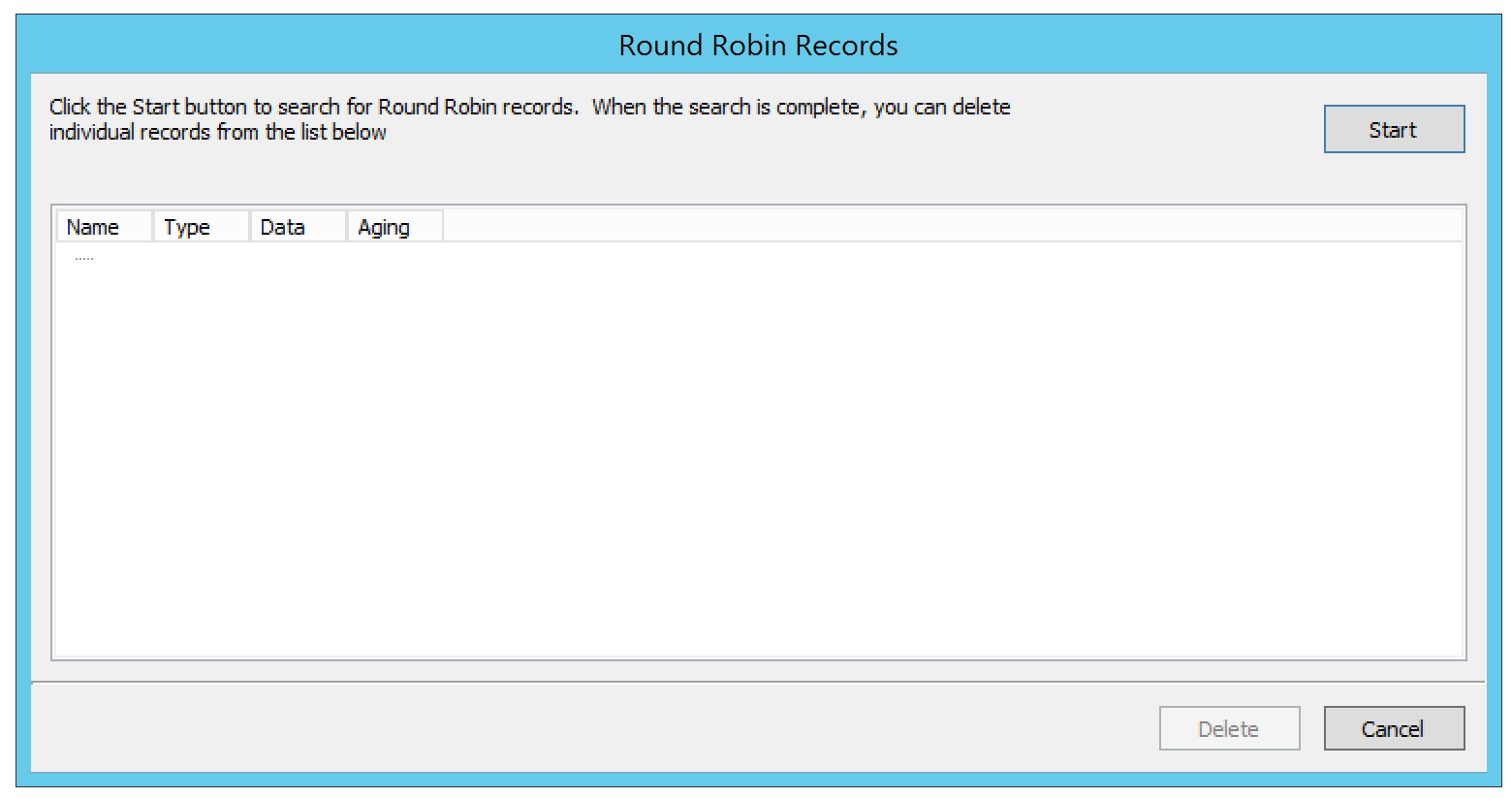 The Show Round Robin Records maintenance operation allows you to see and delete round robin DNS records. Round robin records are multiple address (A / AAAA) records with the same name.