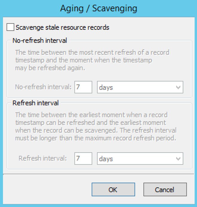 Displays a dialog box where aging and scavenging options can be set for the zone.