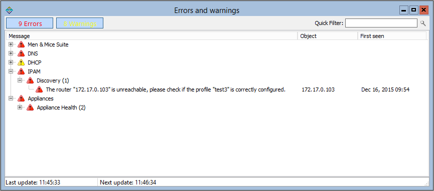 An indication is given if * the server controllers have a problem communicating with Men&Mice central * there is a problem communicating with the update agents running beside the server controllers. |