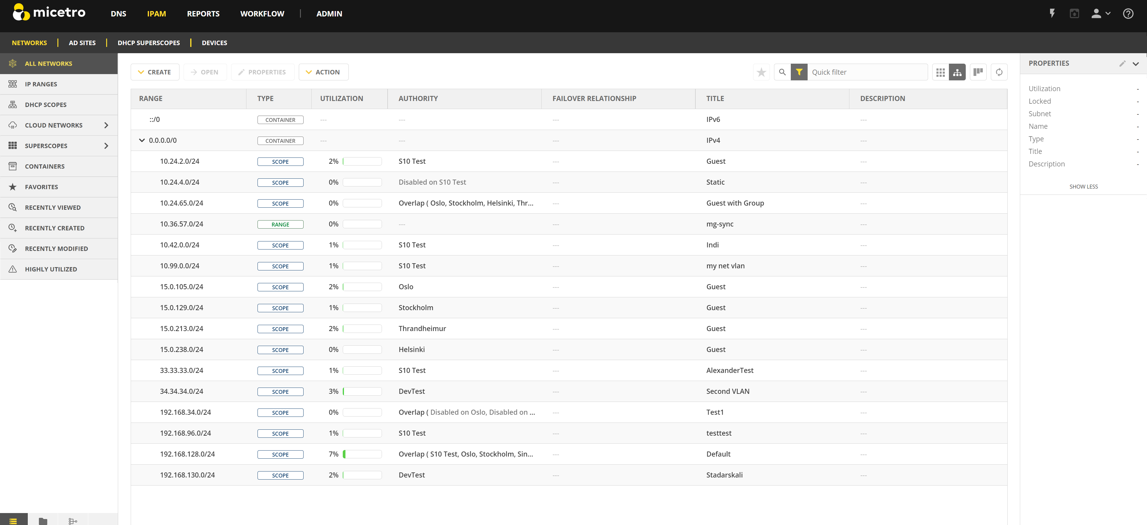 When you have added your Meraki environment to Micetro, your networks will appear on the IPAM page. Micetro retrieves subnets from all networks that have an MX appliance.
