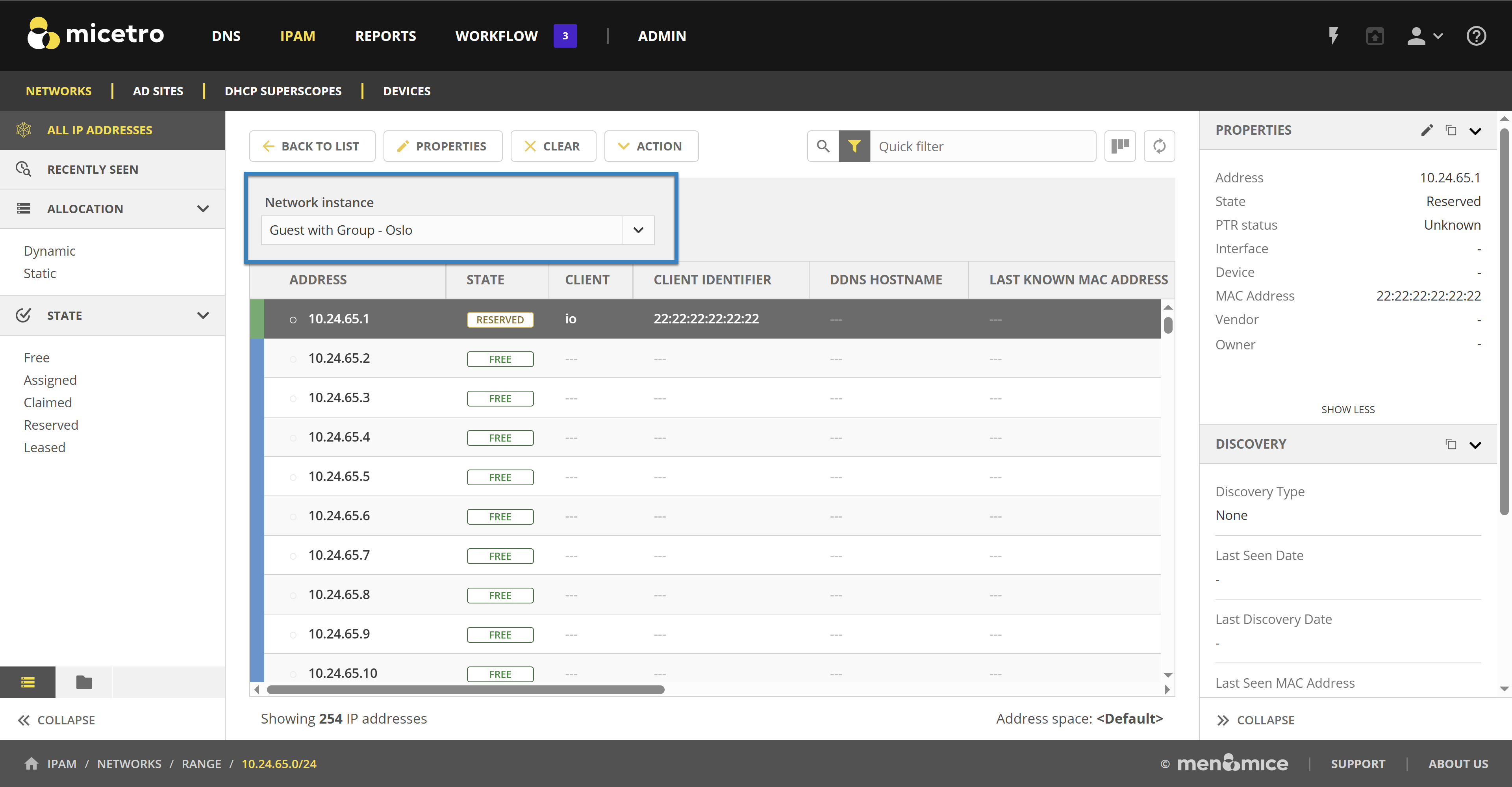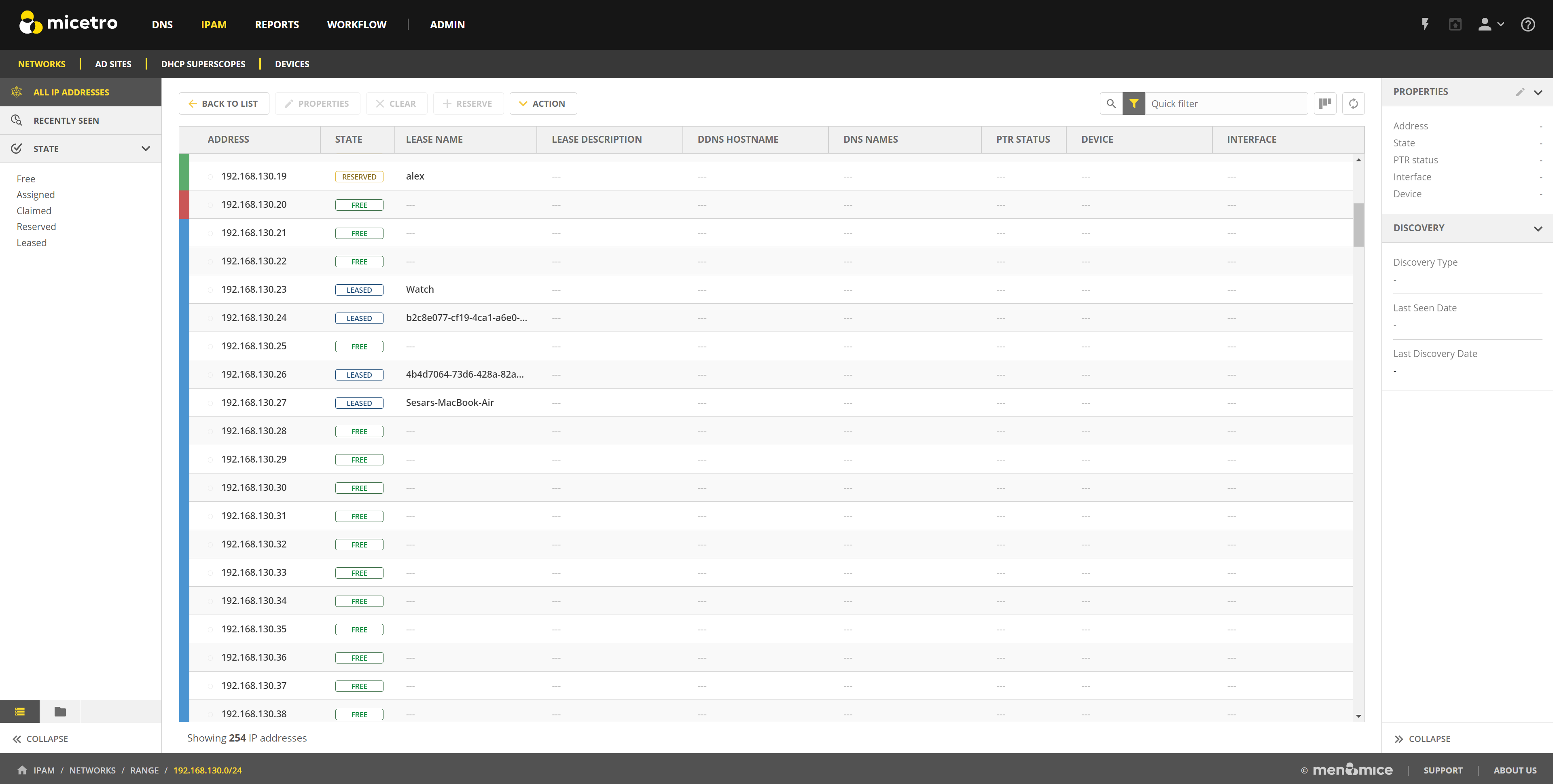 Clients on DHCP networks may have a Leased or Reserved State, depending on whether the client has been temporarily or permanently assigned.