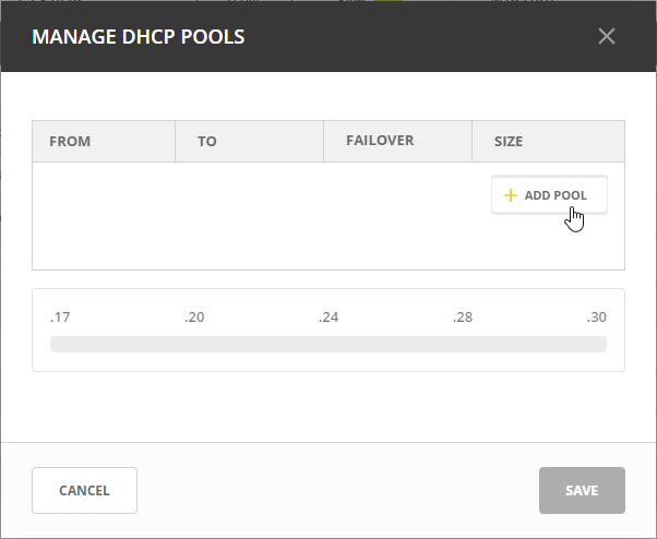 In the Manage DHCP pools dialog box, select the relevant pool.