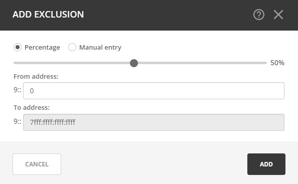 In the Add exclusion dialog box, choose to create the exclusion range by either Percentage or Manual entry: