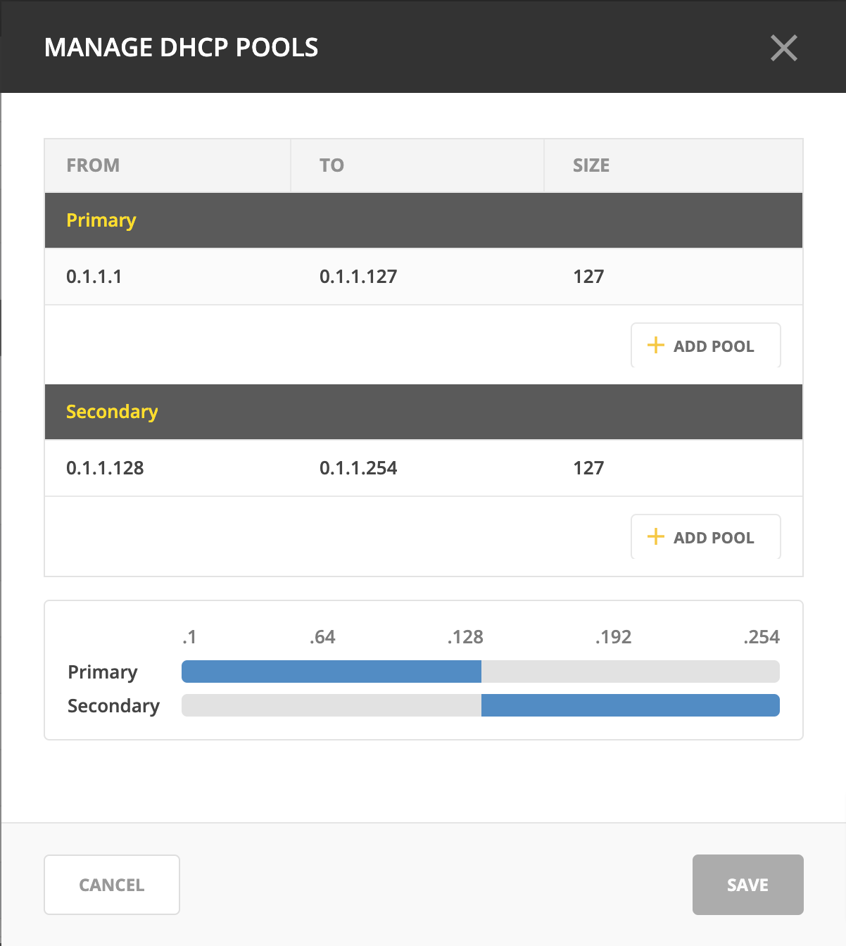 Manual entry: Enter the From address and From address for the range you’d like to exclude from the DHCP scope.