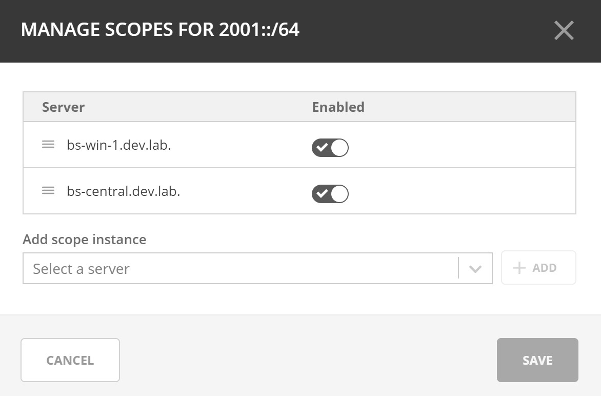 Select a second server to manage the DHCP scope, and then click Add. Enable the servers on which the split scope should reside.