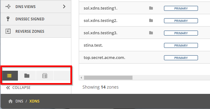 Micetro will remember your current view selection when you navigate away from the DNS page and return to it later.