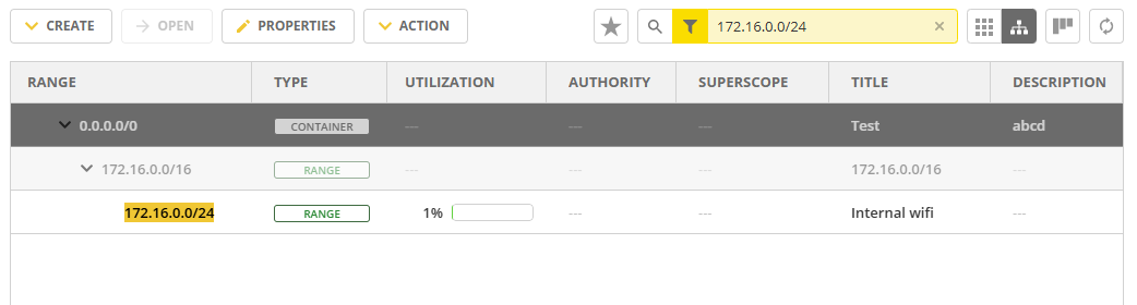 On the IPAM page, you can find the network containing a specific IP address by entering the full IP address into the quick filter.